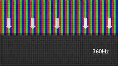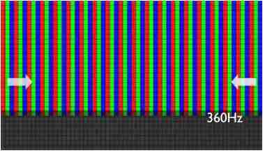 传统液晶驱动是从左到右单向进行,,,在画面更新速度愈来越愈快的情况下,,,位于驱动线路末端的右下角区域,,,,画素的闸极来不及在短时间内获得足够电压,,,无法显示出正确的颜色资讯。。。 |