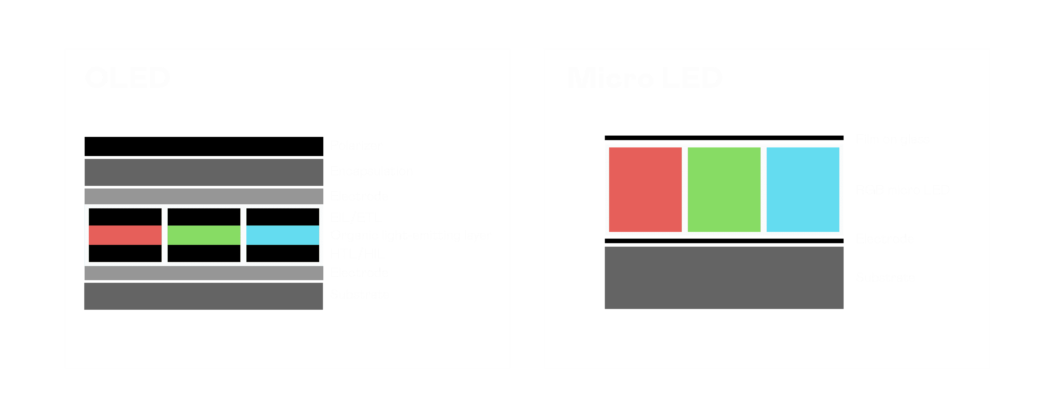 以 LED 做为显示画素,,,可让 LED 的发光效率发挥到极致,,,,从而让显示器具备优异的亮度表现,,,,不论是在户外或室内,,均具备出众的显示效果。。同时,,,,与使用有机材料的 OLED 相比,,,,LED 具备更稳定、、、、寿命更长的特性,,,,不仅不会有画面烙印问题,,,,而且更不容易出现故障、、、、坏点。。